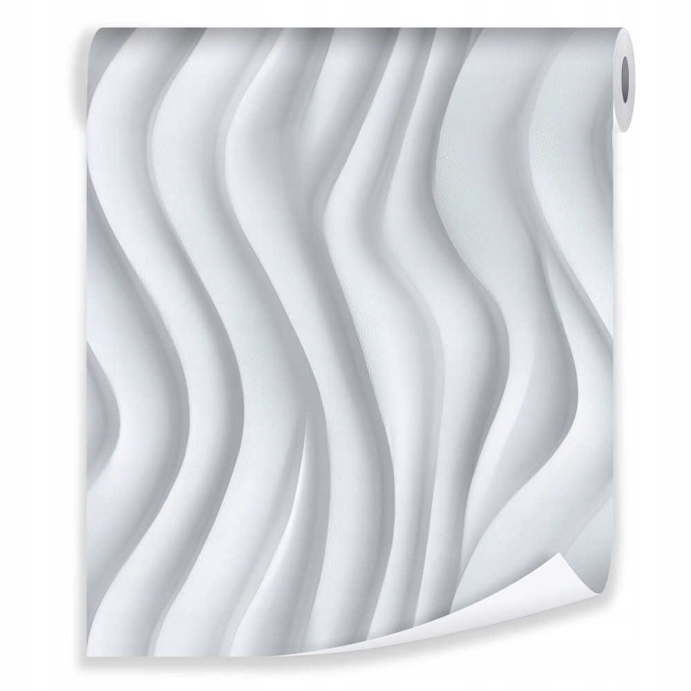 Papier peint abstrait 3D vagues blanc gris sur intissé mur salon chambre à coucher