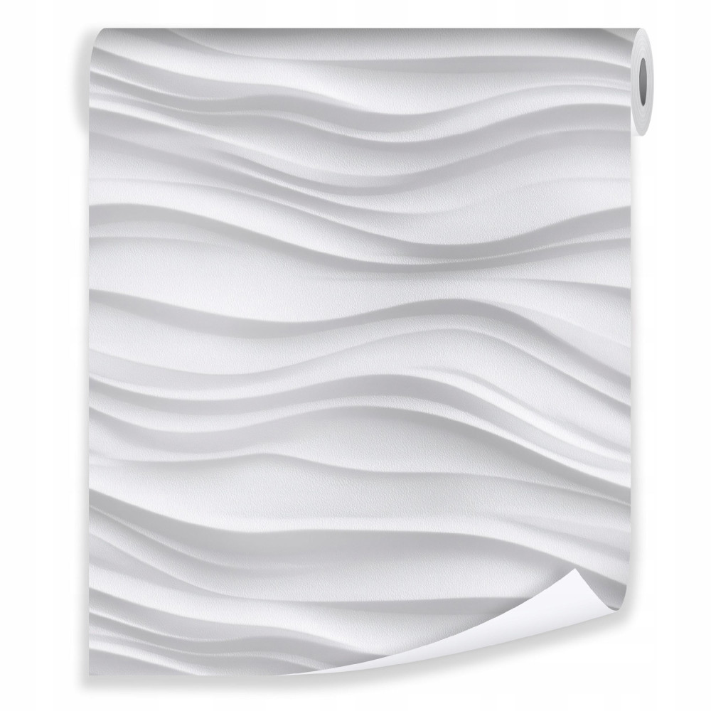 Papier peint abstrait vagues 3D blanc gris sur intissé mur salon chambre à coucher