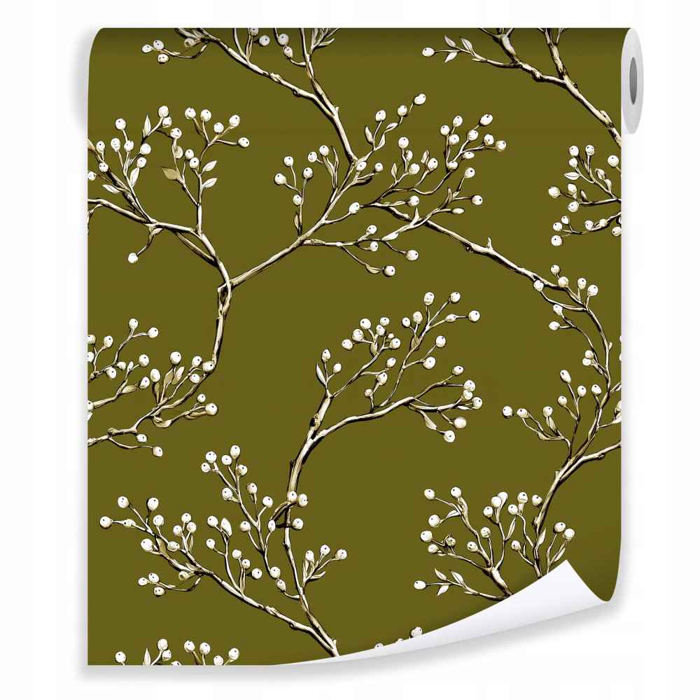 Papier peint branches d'olivier rétro nature sur intissé mur salon chambre à coucher