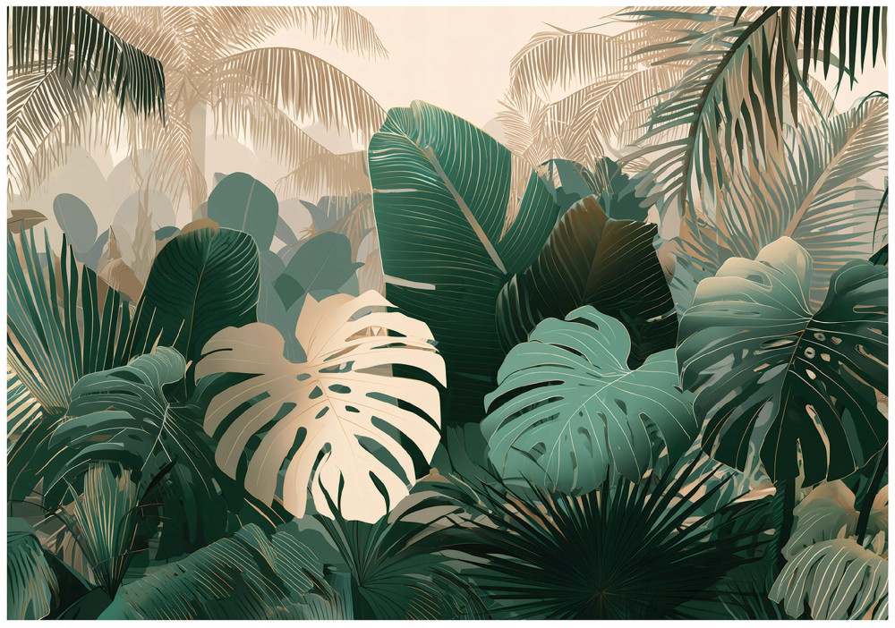 Papier peint feuilles de monstera jungle chambre salon papier peint intissé 350x250