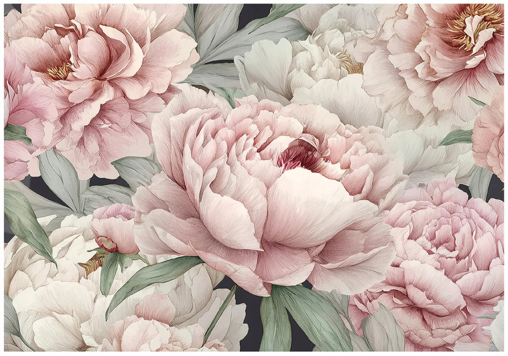 Papier peint fleurs pivoines rose chambre salon papier peint intissé 150x105