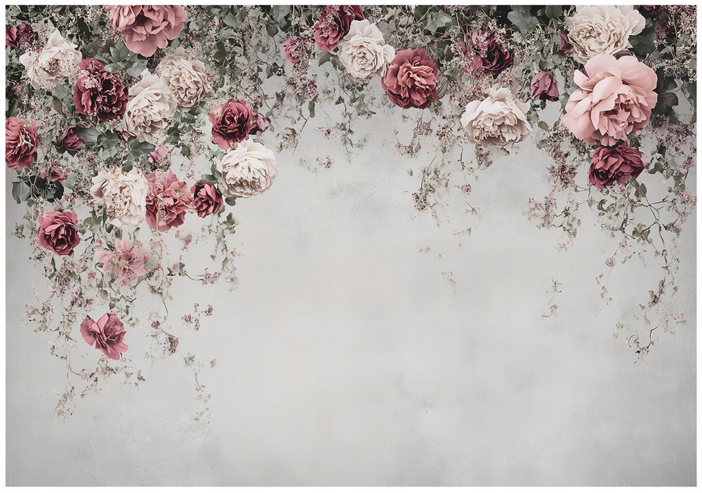 Papier peint fleurs roses béton chambre salon papier peint intissé 150x105