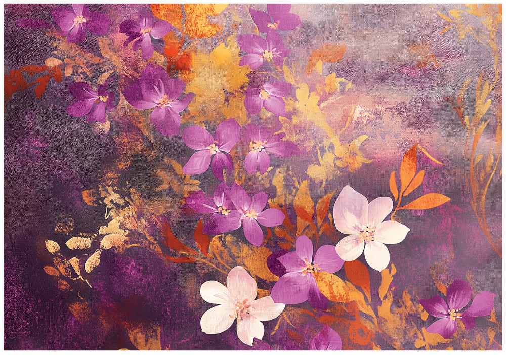 Papier peint fleurs roses dorées chambre salon papier peint intissé 250x175