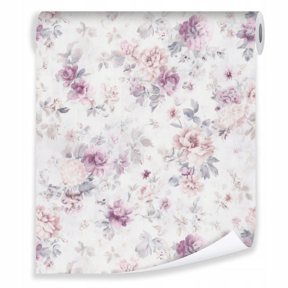 Papier peint fleurs roses nature romantique sur intissé mur salon chambre à coucher