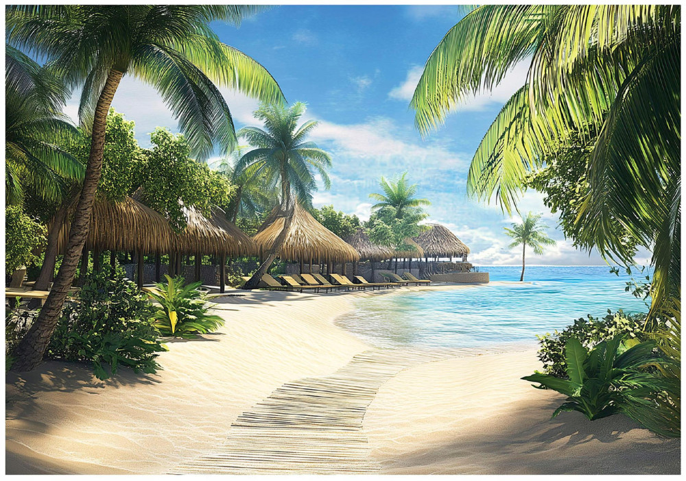 Papier peint paradisiaque plage palmiers mer 3D pour mur chambre salon 200x140