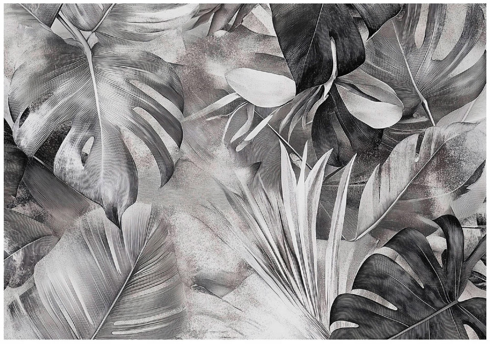 Papier peint photo feuilles de monstera noir et blanc pour mur chambre salon 350x250