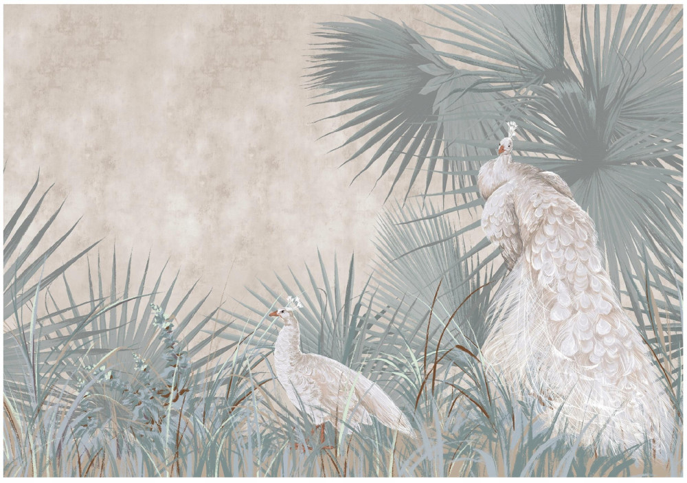 Papier peint photo feuilles de paon sur béton oiseaux pour chambre à coucher salon papier peint 350x250