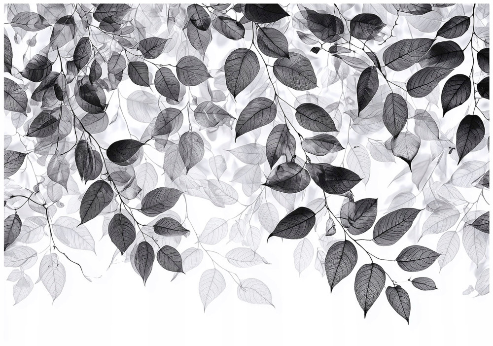 Papier peint photo feuilles noir et blanc à accrocher au mur chambre salon 150x105