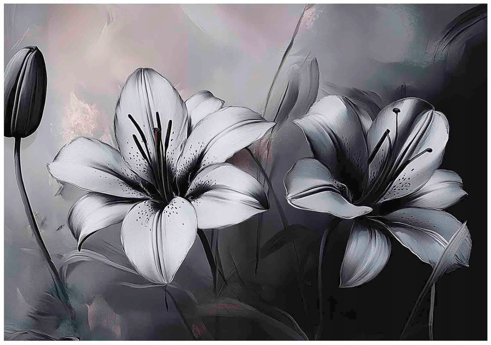 FOTOTAPETA KWIATY 3D BIAŁO CZARNY BETON NA ŚCIANĘ SYPIALNIA SALON 250x175