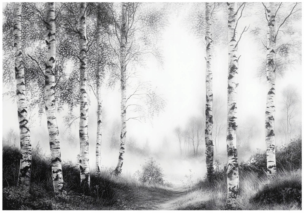 Papier peint photo forêt arbres noir et blanc chambre salon papier peint intissé 400x280