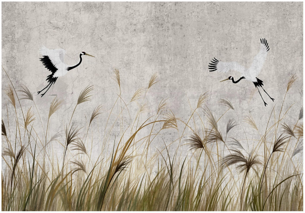 Papier peint photo grues oiseaux herbe de pampa pour chambre à coucher salon papier peint 150x105