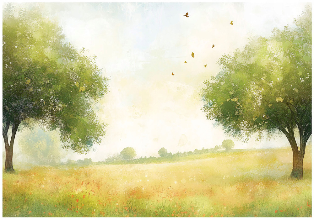 Papier peint photo prairie 3D arbres nature vert pour mur chambre salon 200x140