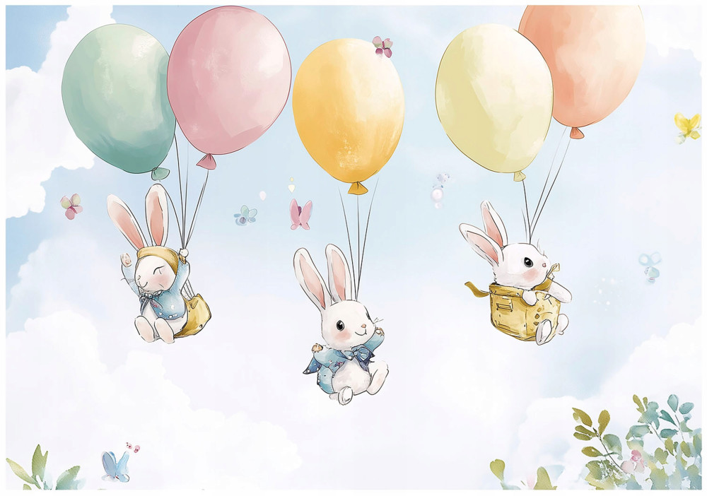 Papier peint pour fille lapins nuages papier peint pour chambre d'enfant 150x105