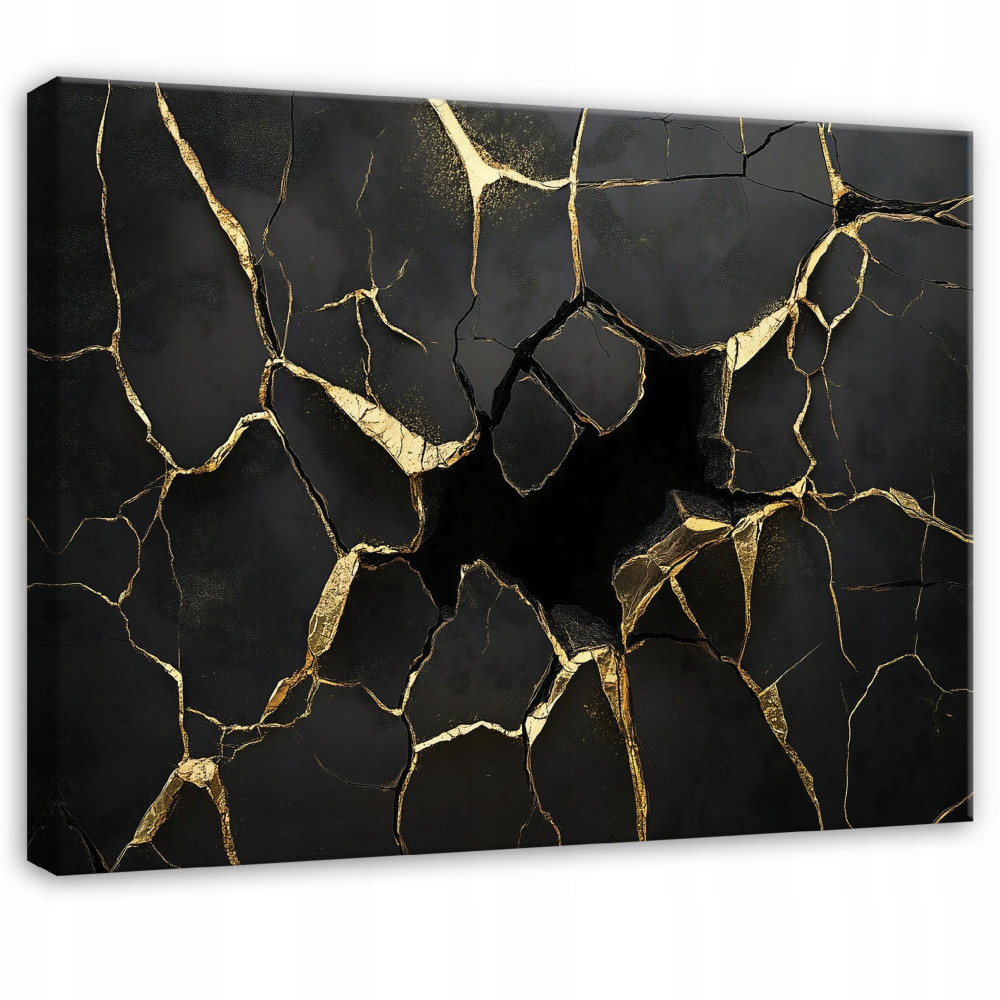 Tableau noir et or marbré pour chambre à coucher, salon ou cuisine sur toile 100x70