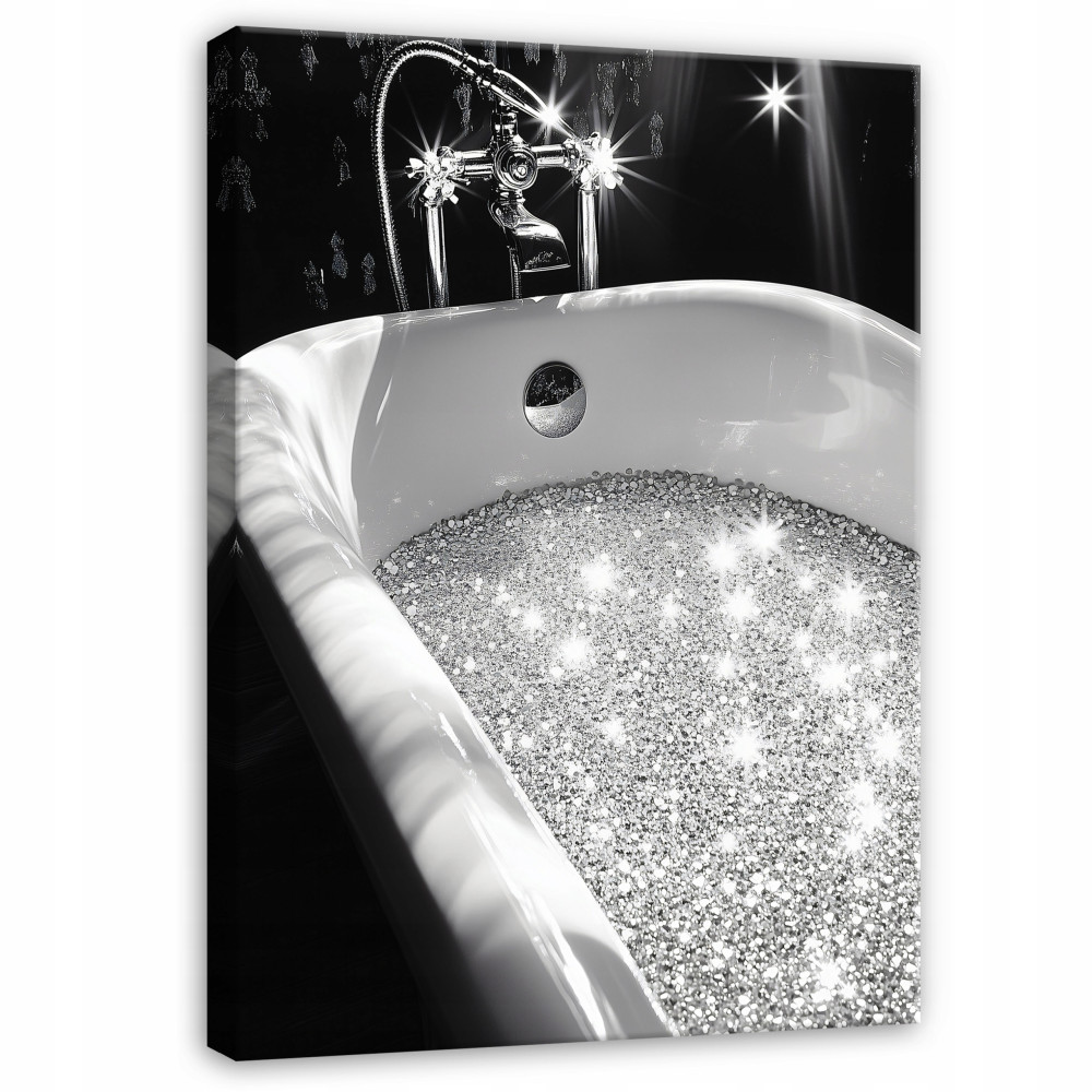 Tableau pour salle de bain, toilettes, noir et argent, moderne, sur toile, 40 x 30 cm